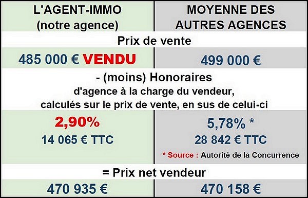 Quand les honoraires sont à la charge du vendeur, ils sont calculés